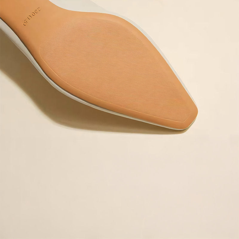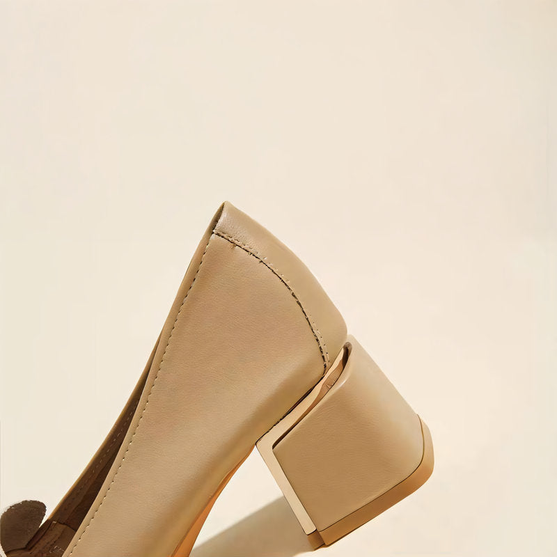 繊細な金属ヒールと丁寧なステッチが、このシューズの特別感を引き立て、洗練された雰囲気を演出します。