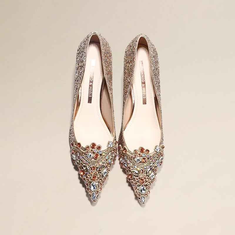 全面にグリッターを纏った存在感のあるドレスシューズ。